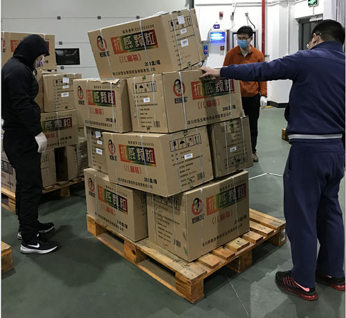 2020年2月8日下午,在得知大卡車還有2個小時就要下高速,江西商務經理馮萍和一起幫忙的家人,康復新事業部省區經理勒系儀,抗感事業部江西省區經理許昊等早早地守候在高速公路出口。在得知情況后,康復新事業部大區總監張小琦,也毫不猶豫放棄和家人團圓過節,迅速趕了過來幫忙。